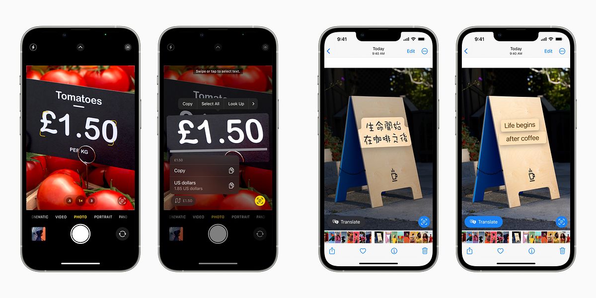 從iOS15起便新增的「原況文字」功能,這回進化到也能適用於影片,並且可以快速轉換匯率、翻譯文字等。