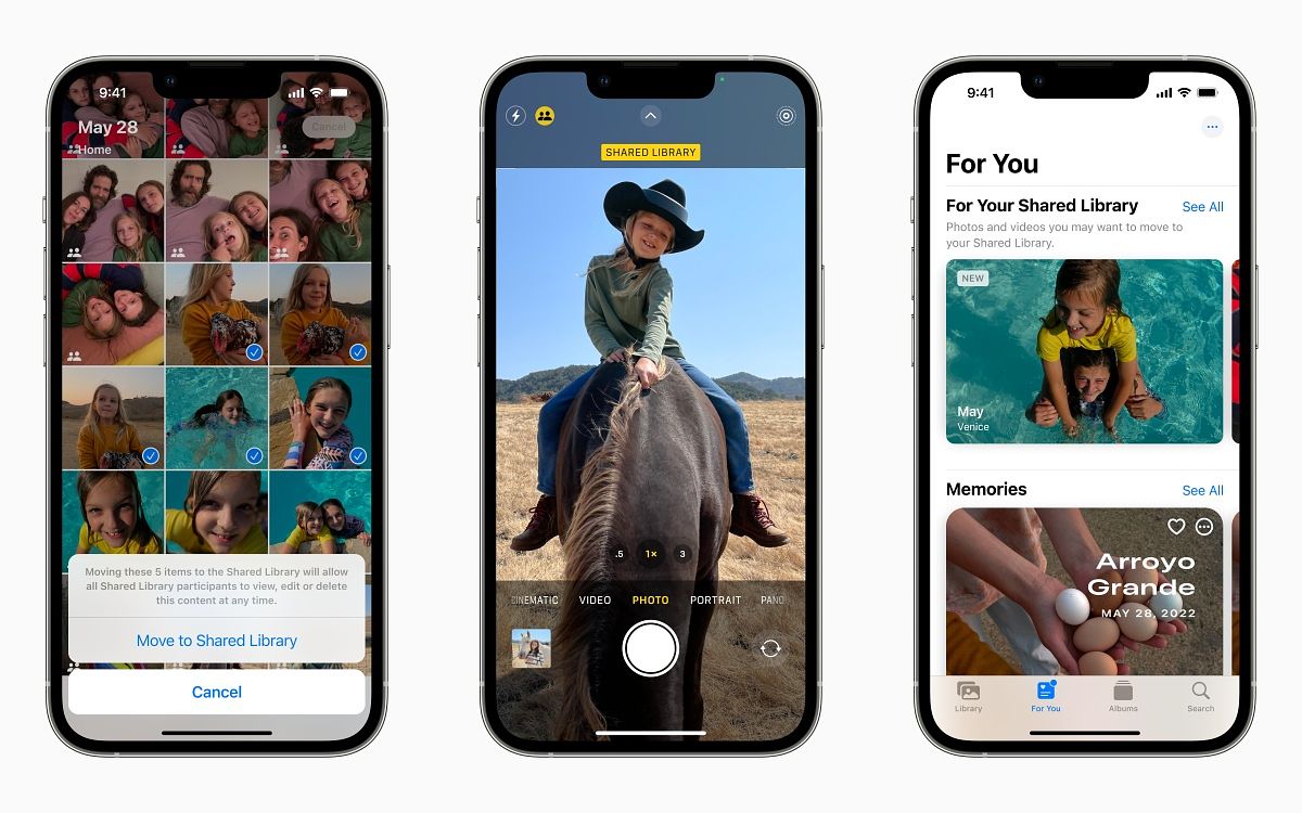 想要邀請親朋好友共同分享圖庫,可以邀請最多六位,除了可以根據開始日期或照片人物共享照片之外,也能直接透過「相機」 中新的開關設置,選擇將照片自動傳送到「共享的圖庫」中。 每一位「共享的圖庫」使用者都能新增、刪除、編輯共享照片或影片,或將其加入喜好項目,這些照片或影片也會出現在自己的「回憶」和「精選照片」中。