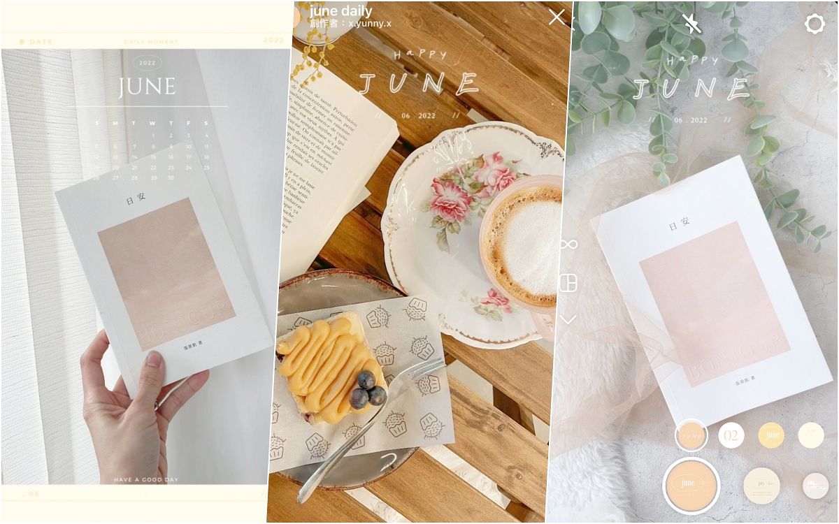 六月份專屬的限動濾鏡,光是在文字與色調部分就有十分多變化,可愛的月曆版型設計巧妙妝點、讓人不管拍什麼都充滿新意,每月份都有當月主體可以下載使用唷。
