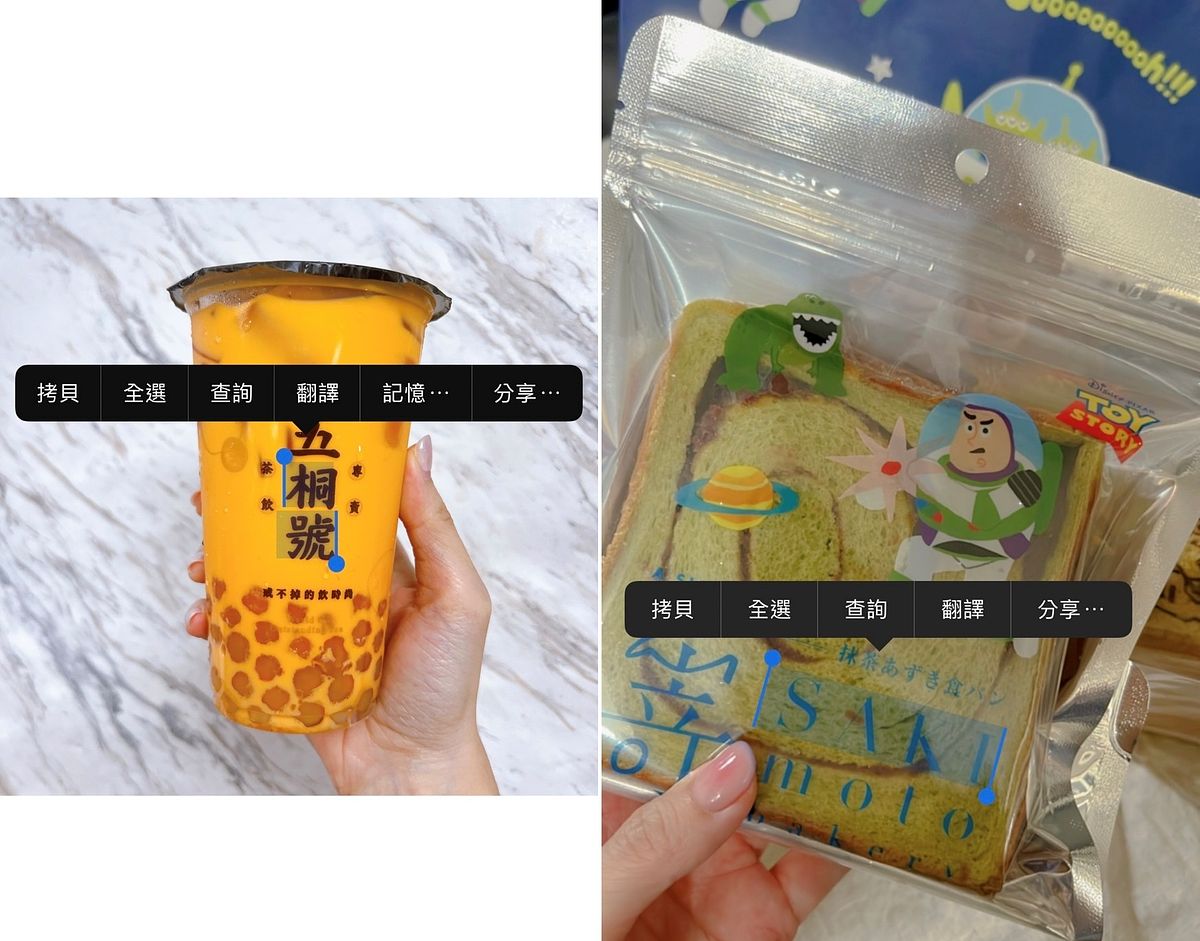 長按照片啟動「原況文字」功能,就將照片中的文字複製、查詢資訊、翻譯、分享等,真的很省時!
