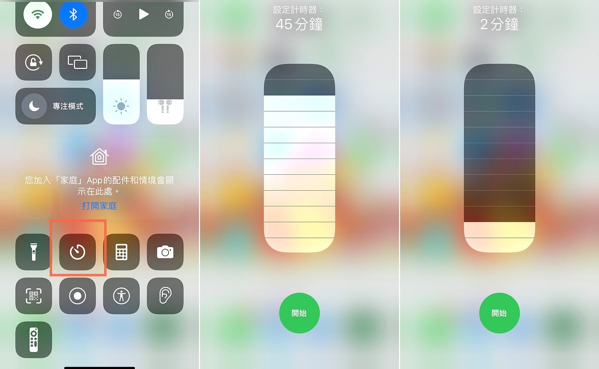 同樣是在控制中心中,長按計時器,就能快速拉動倒數時間,超級方便!