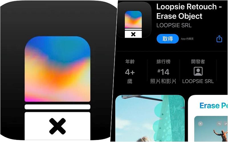 這款修圖App只要在App store搜尋「Loopsie Retouch」就能下載,網友推薦評價都蠻高分,操作上十分容易。