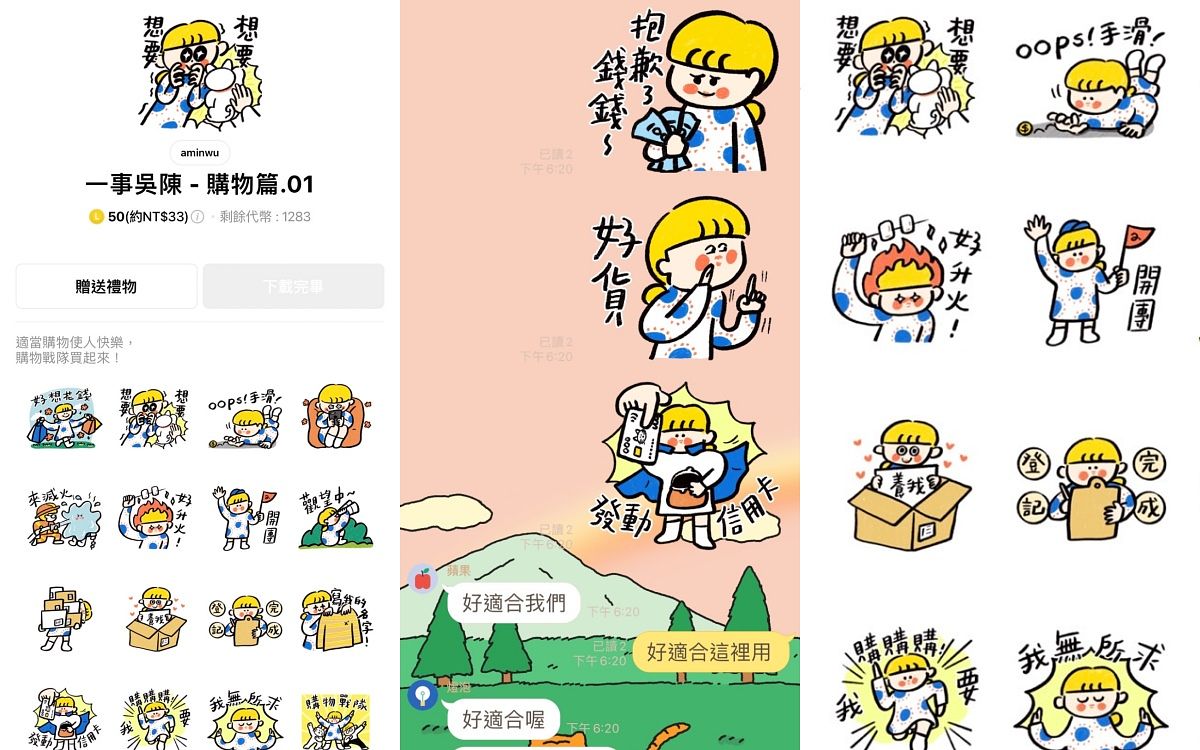 對於熱愛網路購物的我,當然少不了姊妹購物的群組啦!這種跟購物相關的貼圖真的是百用不膩,可愛俏皮的畫風讓花錢的瞬間又輕鬆一點~尤其是在購物群組一起推坑集免運也好用到不行,跟我一樣是網路購物使用者請用起來!(行銷企劃副理Pobbi)