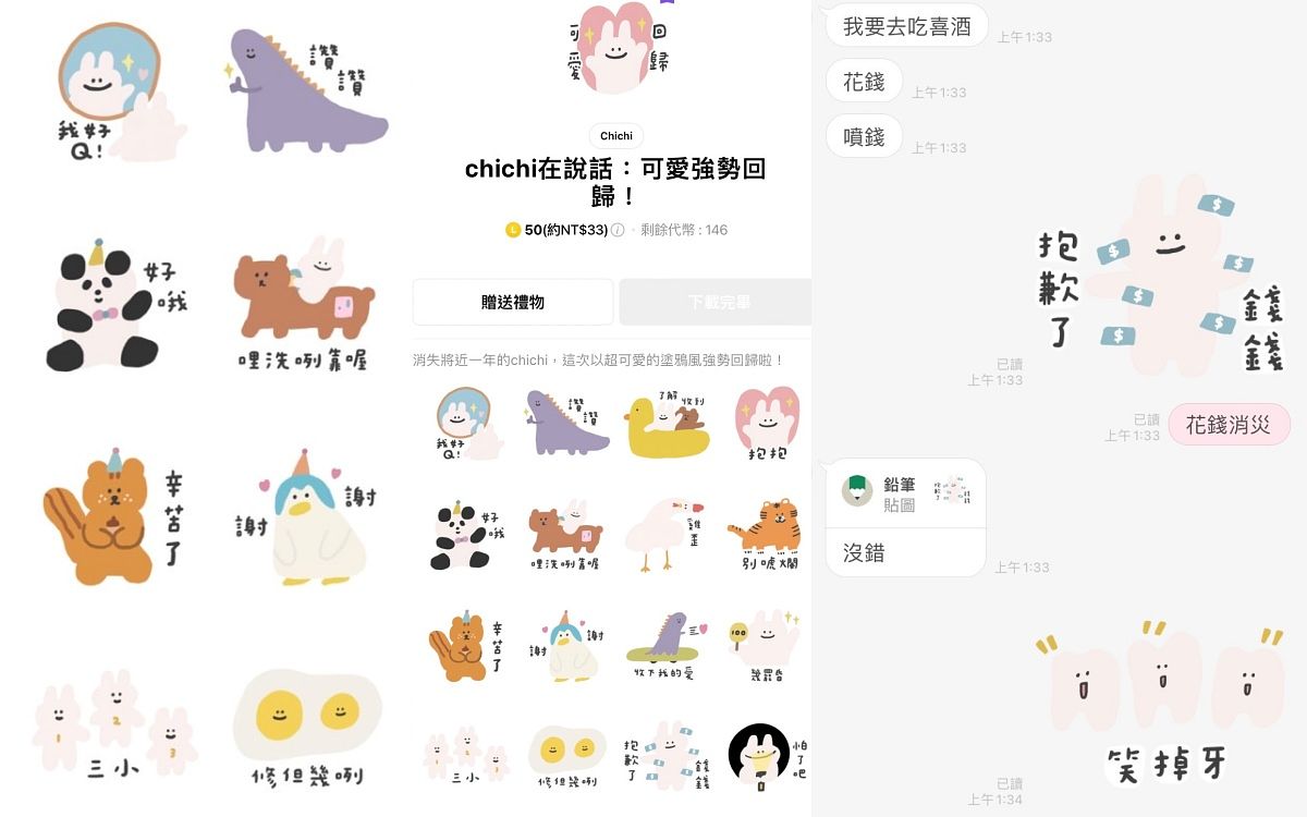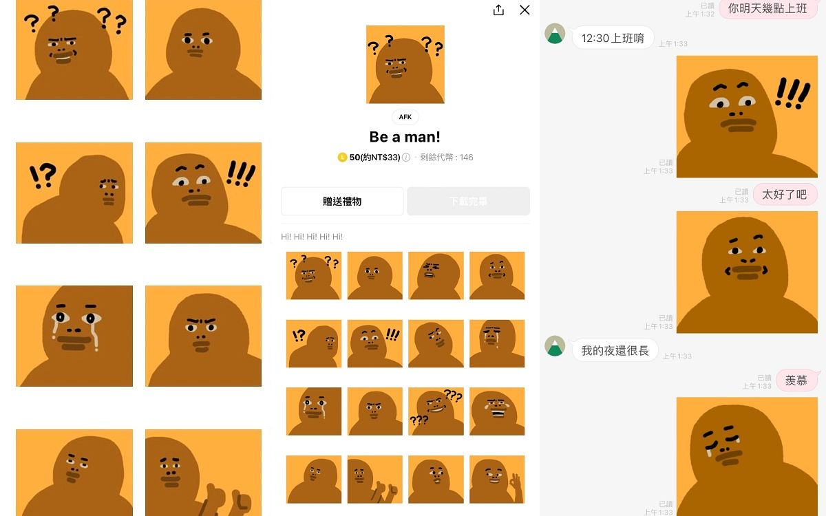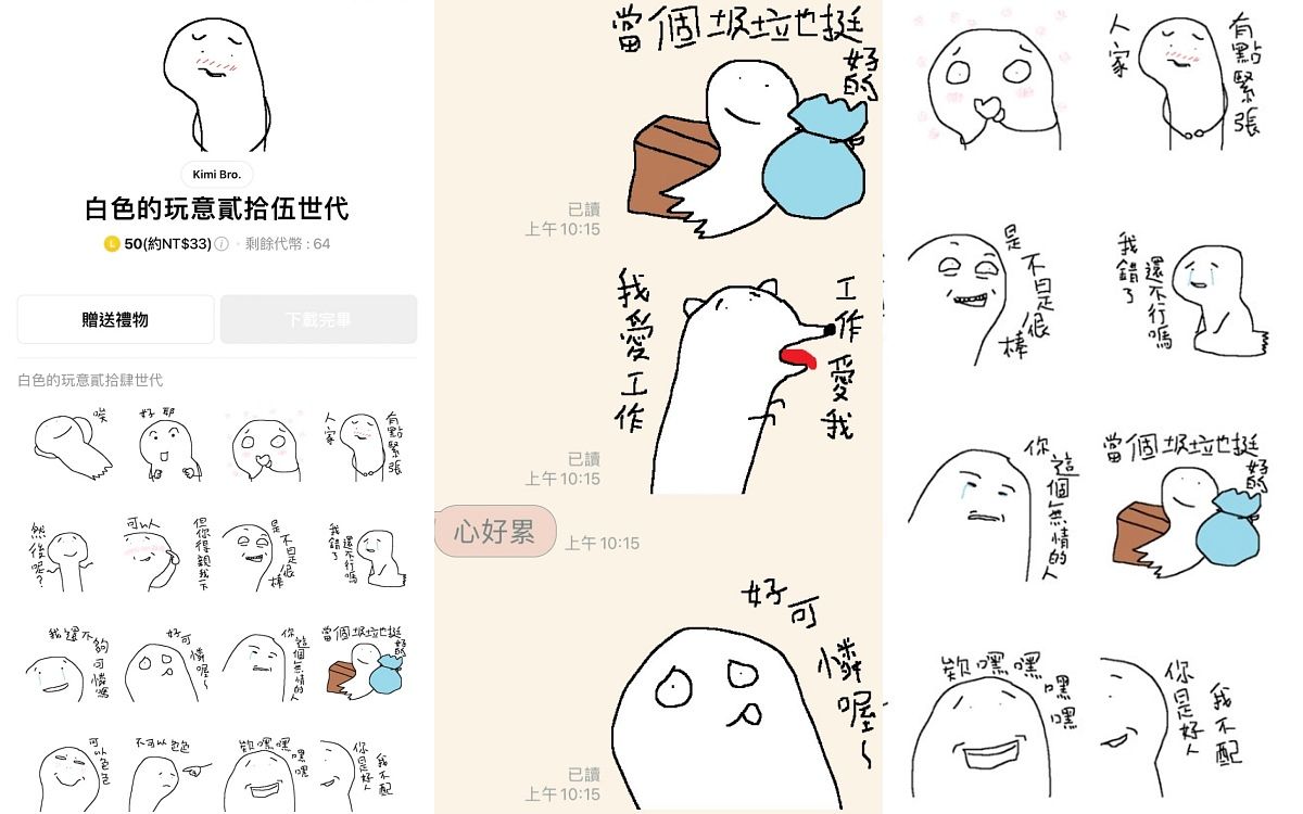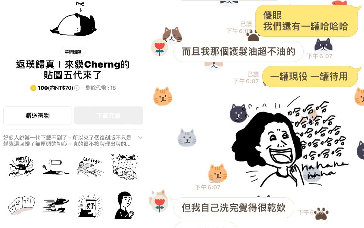 我是Cherng馬來貘的粉絲,至少買了五組他的貼圖,使用情境很廣泛,很多對話都適用,而且又帶點厭世感超戳我的心!他出了好多系列,甚至還有動態或有聲音的版本,一定找得到想表達的情緒的貼圖,也不會讓人覺得唐突失禮,超級實用!(資深行銷企劃組長Amanda)