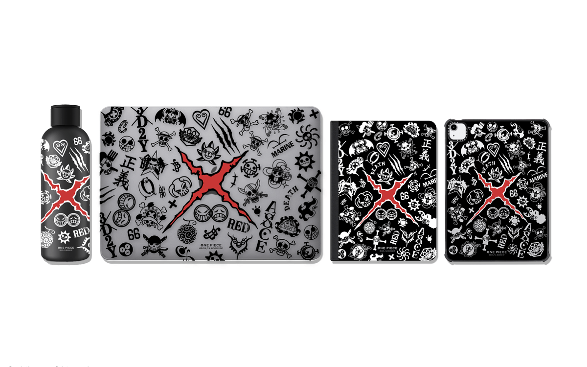 除了手機殼外,ONE PIECE x CASETiFY 第三波聯名系列亦推出一系列電子配件,包含黑色酷炫鏡面等多樣化的 AirPods 保護殼、MacBook 保護套、不鏽鋼保溫瓶等。今(2022)年適逢航海王漫畫連載 25 周年, CASETiFY 三度攜手 ONE PIECE,透過豐富的電子與生活配件,全面帶領粉絲重溫最喜愛的航海王經典時光。