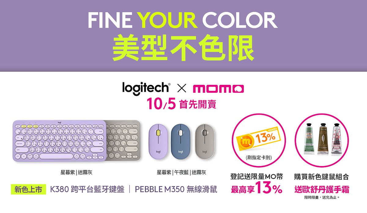 圖片來源:Logitech 10 月 5 日起時尚新色 momo 獨家優惠首賣,下單登記送限量 mo 幣,鍵鼠同購再送好禮
