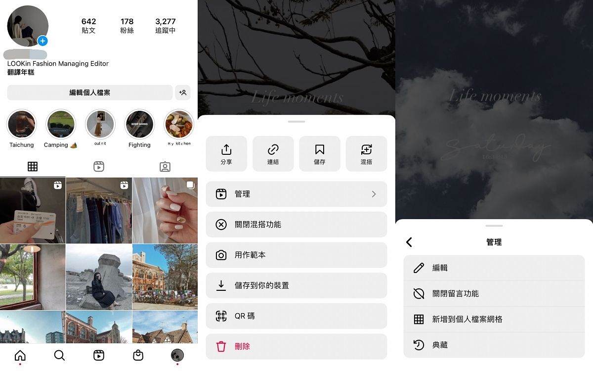 1.Reels可加回個人檔案網格