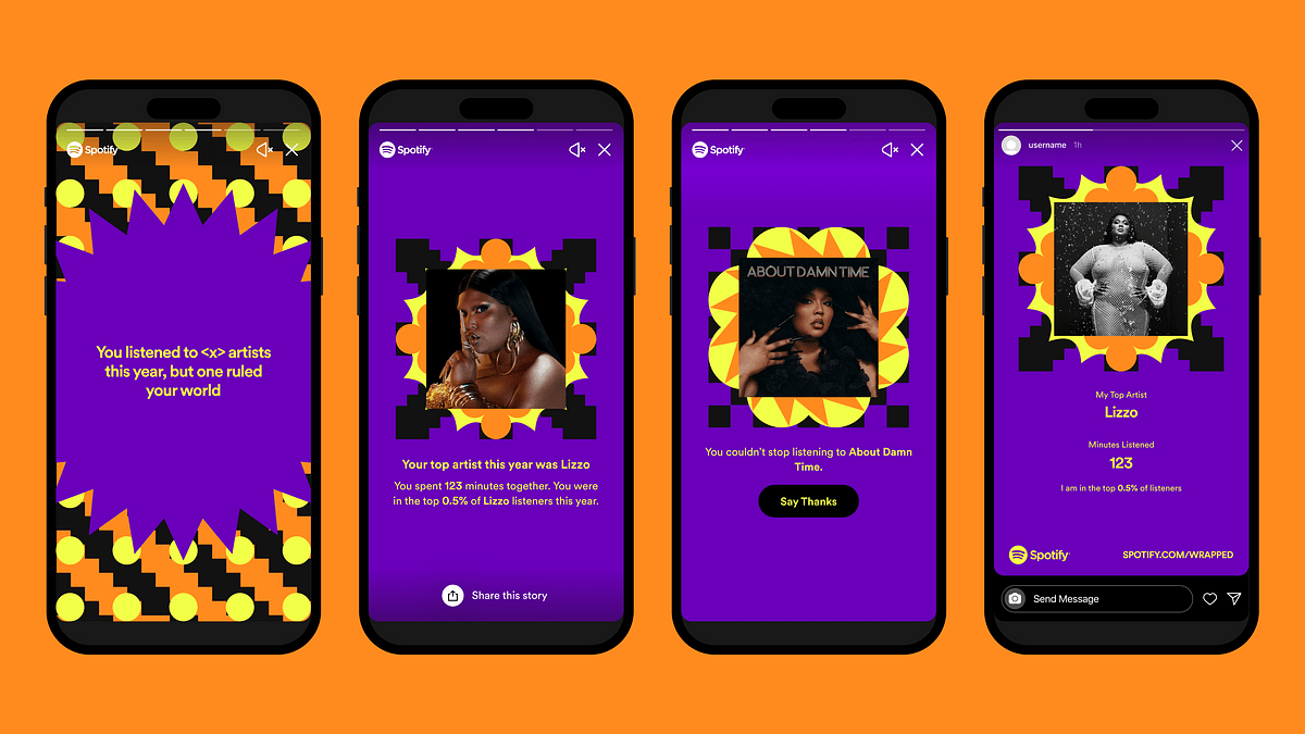 圖片來源:Spotify 即日起,符合資格的使用者可於 Spotify 的 iOS 及 Android 行動版應用程式造訪獨家的 2022 個人化年度回顧體驗,包含各種自我表達與趣味遊戲內容: