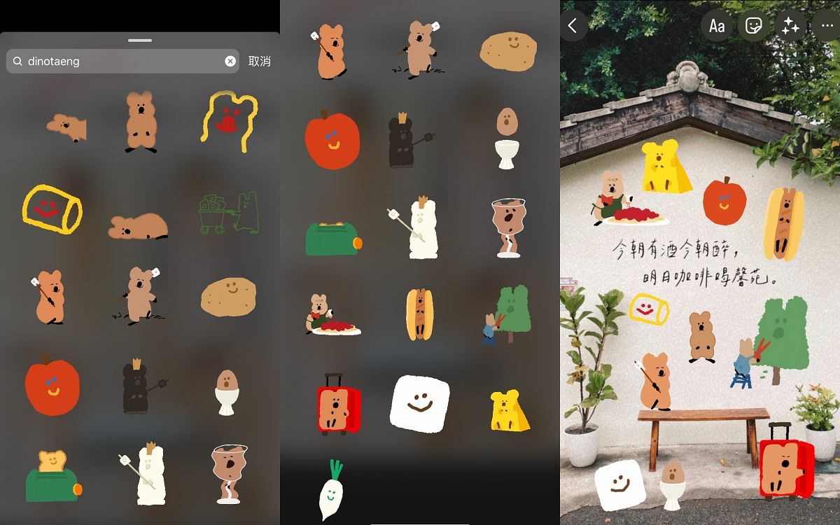 喜歡Dinotaeng短尾矮袋鼠的人千萬要收藏這個IG GIF關鍵字,實在是可愛得要令人瘋掉~無論是招牌矮袋鼠的各種動畫插圖,或棉花糖Marsh、其他小配角圖案真的都超Q!尤其矮袋鼠拿著一根叉有棉花糖的木棍走來走去,不只經典有代表性,點綴在限動上更是太吸睛了!