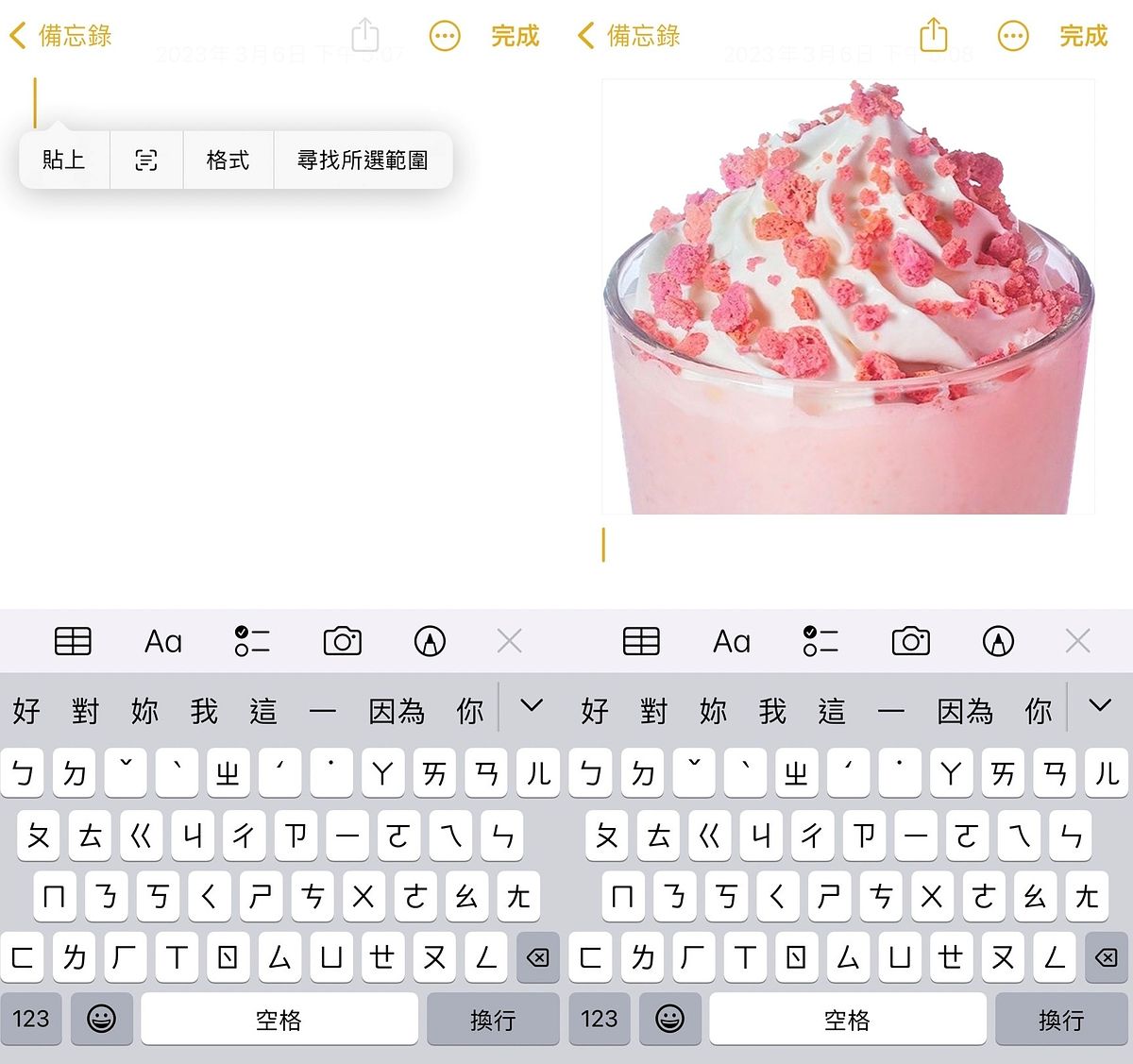 接著點開備忘錄貼上,就能將去背圖片儲存在備忘錄中囉!