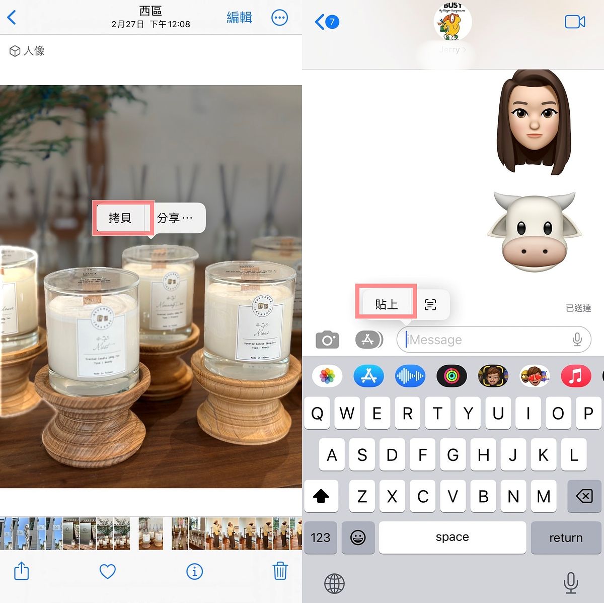 iPhone手機照片去背技巧 5. 長按照片拷貝至iMessage傳送