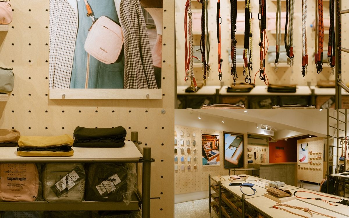 圖片來源:Topologie 新店位於台北中山區,在店裡除了可找到Topologie熱賣的手機殼和繩索背帶之外,還有多款包款和飾品配件。店裡亦特別提供空間給客人現場體驗Topologie的創新概念-Wares System,其中包含以組件形式的獨立手機殼和斜孭袋,搭載沿自登山繩和扣而演變成的50多種不同設計可拆式背帶,客人可自由配搭超過1000種的組合,親身創建屬於自己的出行裝備。