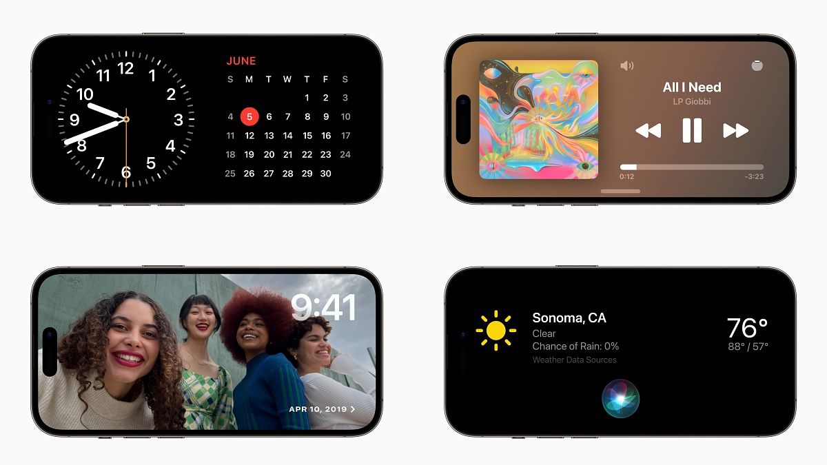 iOS17新增的「待機模式」為全螢幕體驗,可自訂顯示各種風格時鐘、照片或小工具,在待機模式下仍支援「即時動態」、Siri、來電顯示和大尺寸通知。只要輕點螢幕簡單喚出待機模式,而具有永遠顯示功能的 iPhone 14 Pro則可隨時取用。
