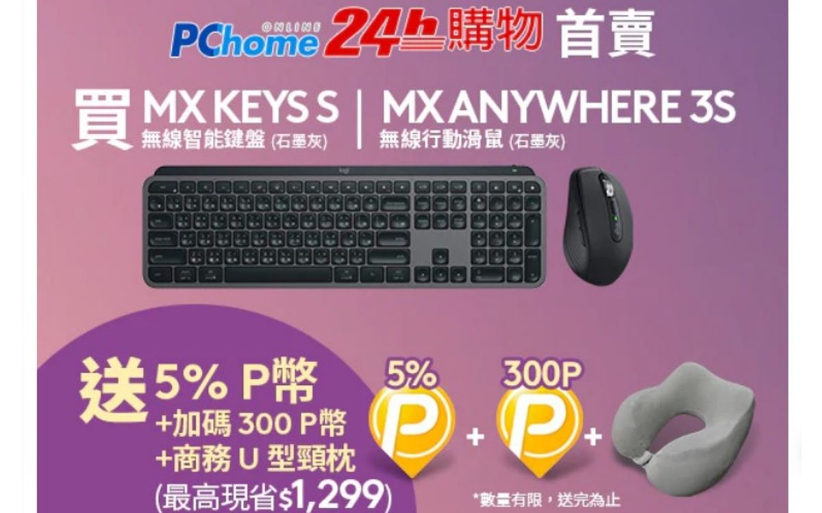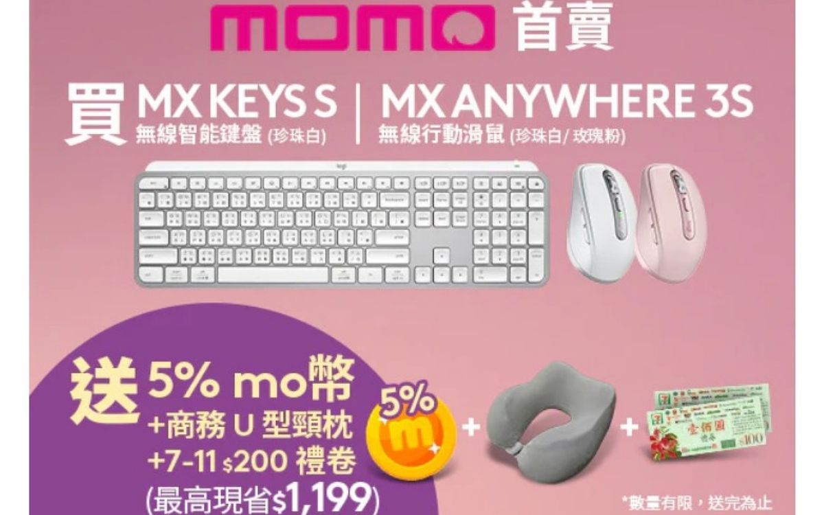全新MX高階商務系列-MX Keys S 無線智能鍵盤及MX Anywhere 3S 無線行動滑鼠,預計 6 月 28 日全面上市,MX Keys S 無線智能鍵盤建議售價 3,990 元,MX Anywhere 3S 無線行動滑鼠建議售價 2,990 元。6 月 19 日 momo 、 PChome 全台搶先獨家首賣;momo 購物獨家首賣 MX Keys S 珍珠白與 MX Anywhere 3S 珍珠白和玫瑰粉,限量送商務 U 型頸枕乙個(價值799元)、5% mo幣以及 7-11 200 元 禮券乙張,最高限賺 1,199 元;PChome 獨家首賣石墨灰 MX Keys S 與 MX Anywhere 3S,限量送商務 U 型頸枕乙個(價值799元)、5% P幣以及再加碼 300 P幣,最高現賺 1,299 元。6 月 21 日全通路再推出 85 折超值優惠的 MX Keys S Combo 無線智能鍵盤滑鼠組合,組合內含智能升級 MX Keys S 搭配旗艦鼠王 MX Master 3S S 與 MX 舒適手托,建議售價 7,290 元。