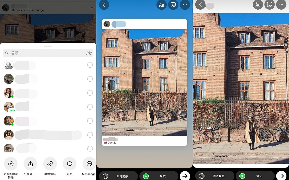 同時將想轉分享到IG限時動態的貼文先分享至限動製作畫面,接著將貼文放大至最大尺寸,這步驟也可以在使用【Vivisticker】模版之前就先操作好喔!