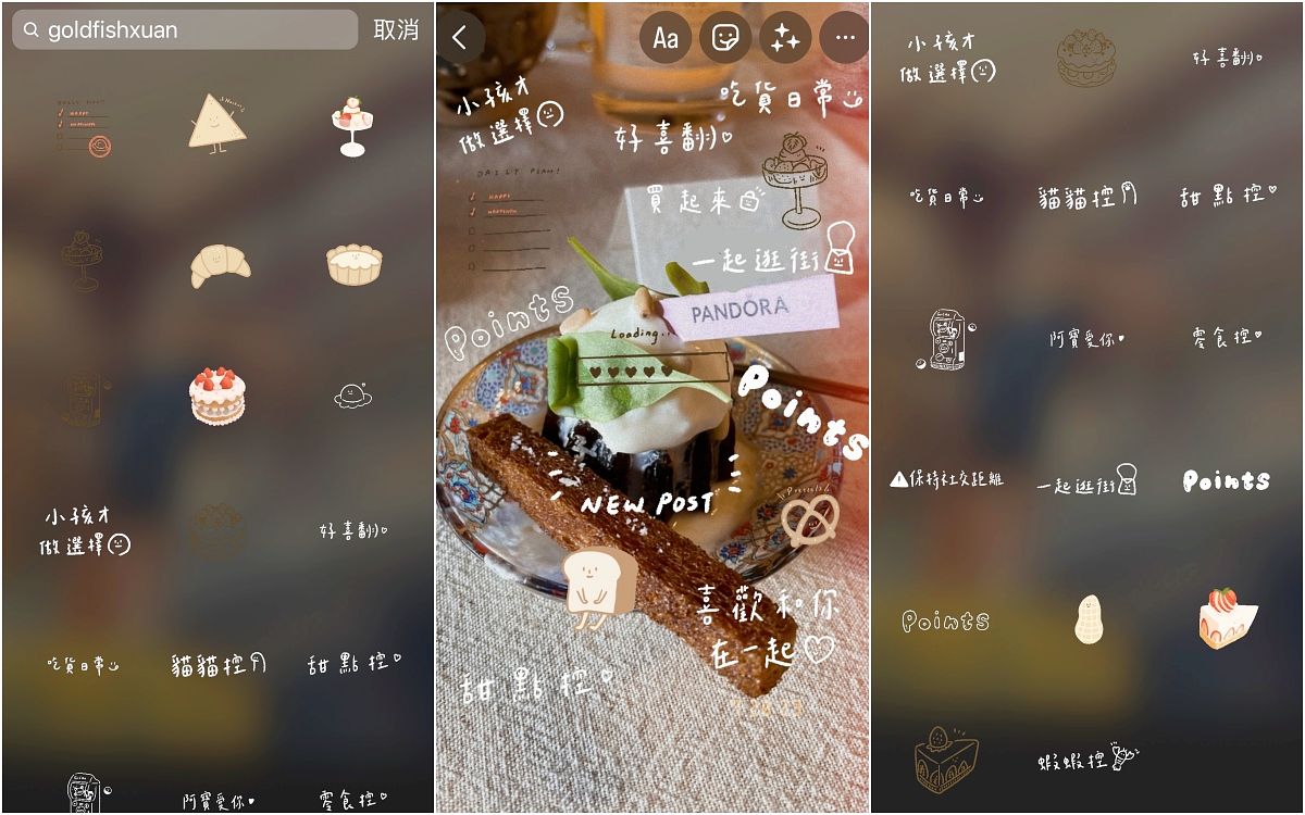 有非常多甜點小插畫跟活潑設計的GIF動圖,隨著字體放大縮小相互搭配、就能呈現非常豐富的限動變化,一定要把帳號記下來!放在食物上或是日常生活使用都很合適。
