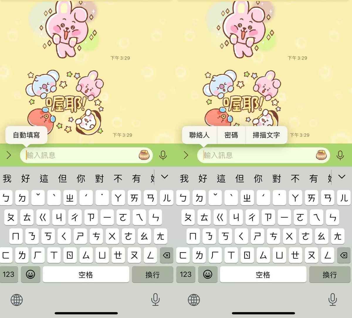 與朋友在Line聊天對話時,利用「掃描文字功能」可以讓對話更有效率!好比說,需要請朋友在國外代購商品時,不知道商品的名字怎麼打沒關係,在訊息框中點一下,看到打字框跳出「自動填寫」後,點選「掃描文字」就搞定!
