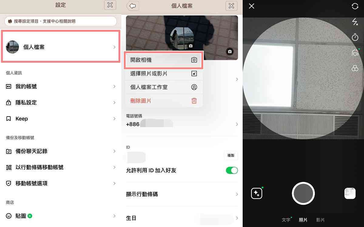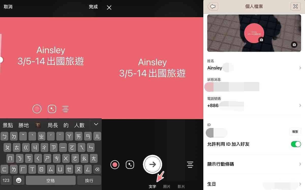 通常LINE的個人大頭貼都是每個人喜歡的照片或圖片等等,但若你不想放上照片,或暫時想用別種方式呈現,其實LINE也可以讓你的大頭貼設定純文字的版本,特別適合用在工作休假期間,直接在大頭貼標註上休假日期,真的十分實用!只要進入LINE設定中的個人檔案,點擊目前的大頭照區域、選擇相機,接著輸入文字跟調整樣式就完成囉!