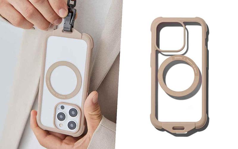 時尚科技品牌XOUXOU的掛繩背帶手機殼,外殼採用耐用的可回收塑料製成,觸感柔軟光滑,搭配超細纖維內襯包裹著手機,手機與殼套能緊密貼合。