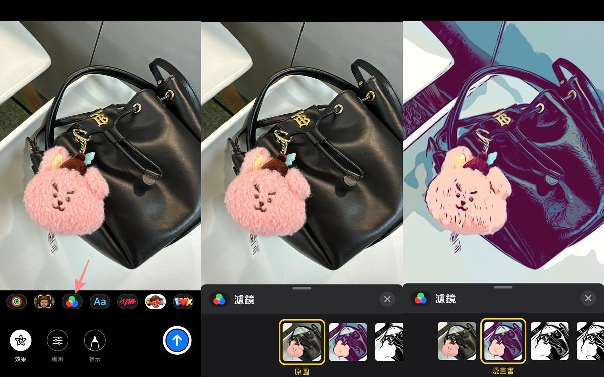 還有一招可以製作出卡通濾鏡風照片的好方法,那就利用是訊息當中的「相機」功能!