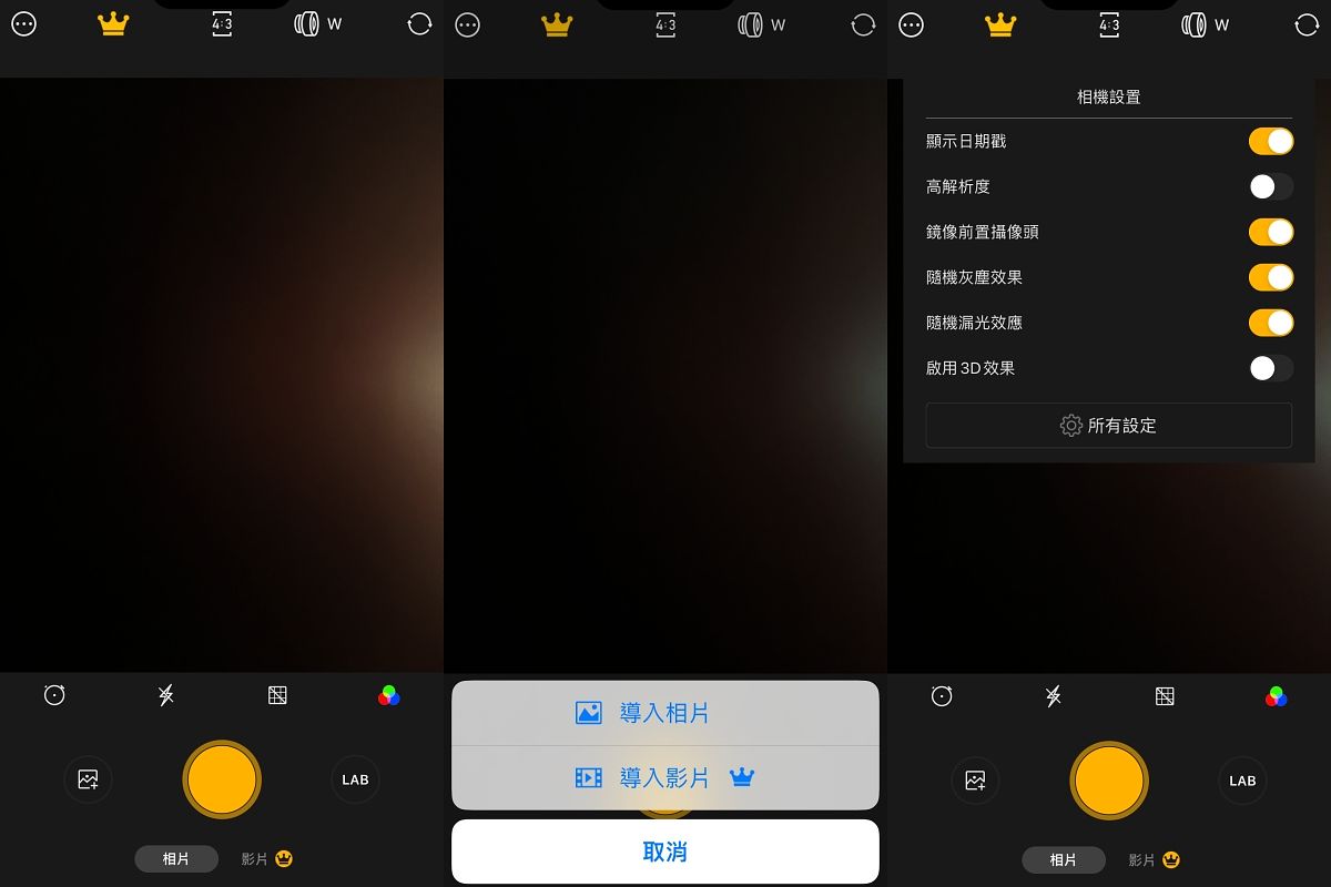 這個應用程序不僅有流行膠片濾鏡 還有特效鏡頭,膠片亭,漏光,灰塵,顆粒過濾器的效果。不只能用來立即拍照,還可以將相簿裡原有的照片後製加上APP裡的復古色調濾鏡,擁有最好的照片和視頻編輯器可在拍完照片後改變所有的濾鏡和效果。