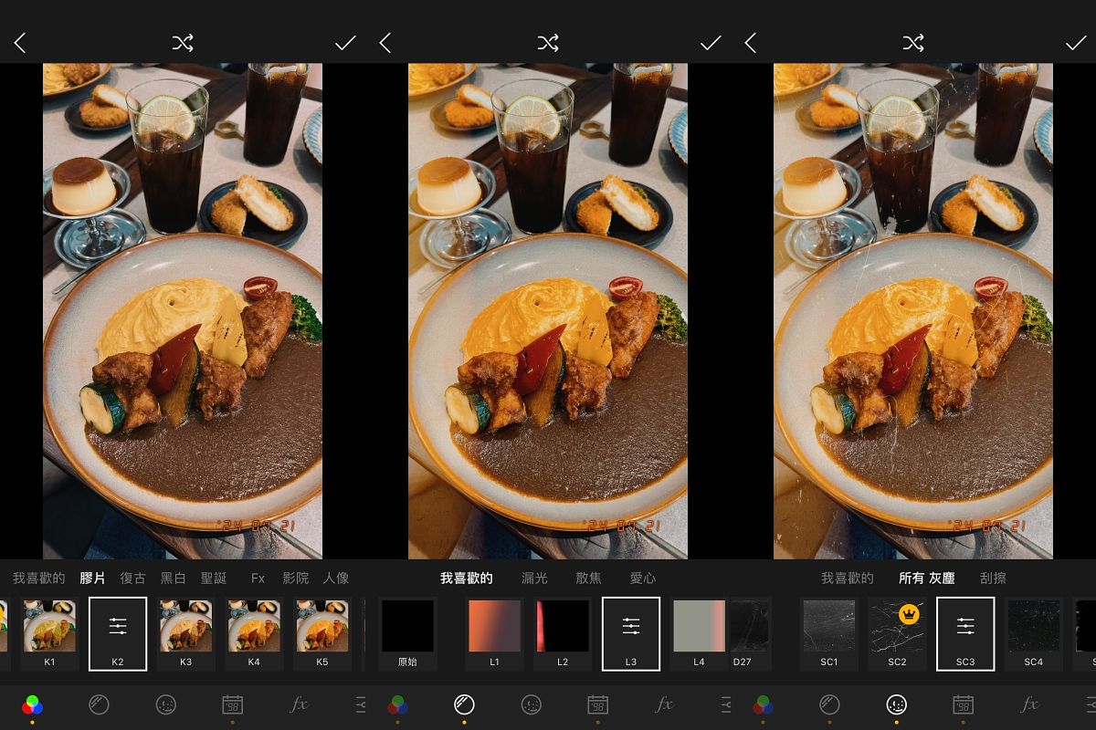 喜歡拍照的人一定要趕快下載這款APP,非常適合不會調色調或懶得精修每張照片的人,一鍵套用十分方便又快速,重點是APP裡的色調非常好看、復古感十足,還有光影、散焦、灰塵雜點、刮擦痕及日期戳等功能,立刻就把所有照片質感升級、超時髦!
