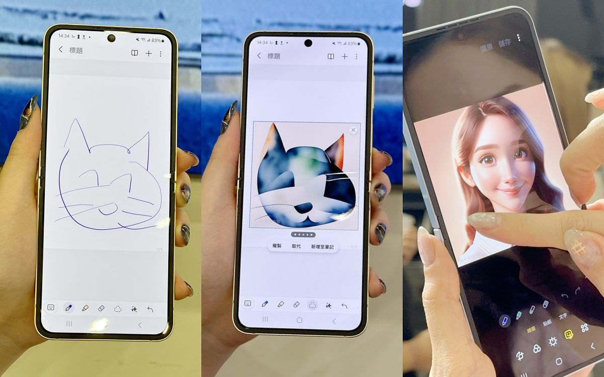 3.4吋的Super AMOLED多功能封面螢幕不需翻開手機也能啟動AI輔助功能。其中的「AI智慧回覆建議可協助使用者分析近期訊息,提供客製化回覆內容。多功能封面螢幕亦支援了更多的Widget小工具,並可同時查看多個小工具上的資訊。