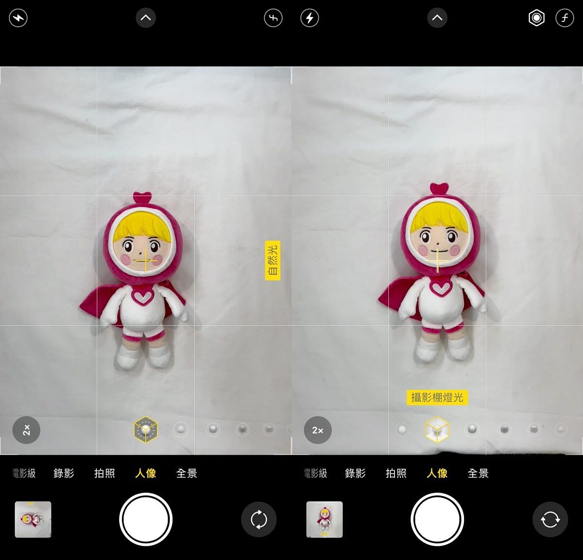 1. 光線良好的情況下,並且將相機設置為「人像模式」,可以選擇預設的「自然光」,編輯個人比較推薦的是「攝影棚燈光」,光影效果比較立體,臉會看起來比較精緻!