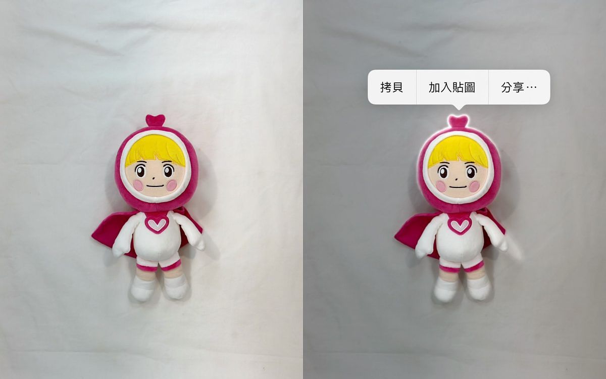 2. 點選拍攝好的照片,並按住照片中的人物主體,將其從背景中分離出來,然後點擊「拷貝」。