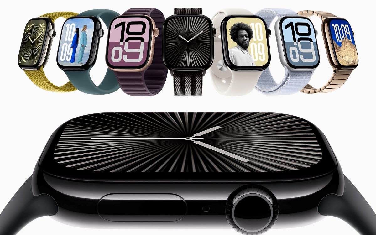 Apple Watch Series 10 除了更薄、也更輕,鋁金屬錶殼的重量比S9輕了10%,鈦金屬錶殼的重量比不銹鋼S9輕了近 20%。錶殼的四角變得更圓、顯示比例更寬,呈現更大顯示器之下,機身的大小僅略微擴增至全新的42公釐和46公釐。