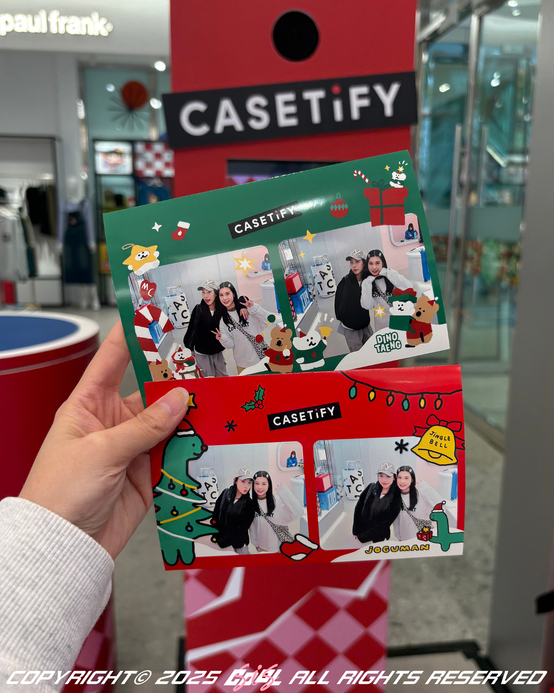 本次聖誕活動 CASETiFY 特別邀請到深受台灣消費者喜愛的人氣藝術家 Dinotaeng 與 JOGUMAN 設計專屬聖誕拍貼,將可愛療癒的角色與濃濃聖誕氛圍完美結合。即日起至 12 月 15 日期間,凡前往台北遠東 Garden City 門市,加入 CASETiFY 台灣 LINE 官方帳號、並於 Google Maps 留下評論,即可免費體驗乙次,為聖誕留下獨一無二的回憶。