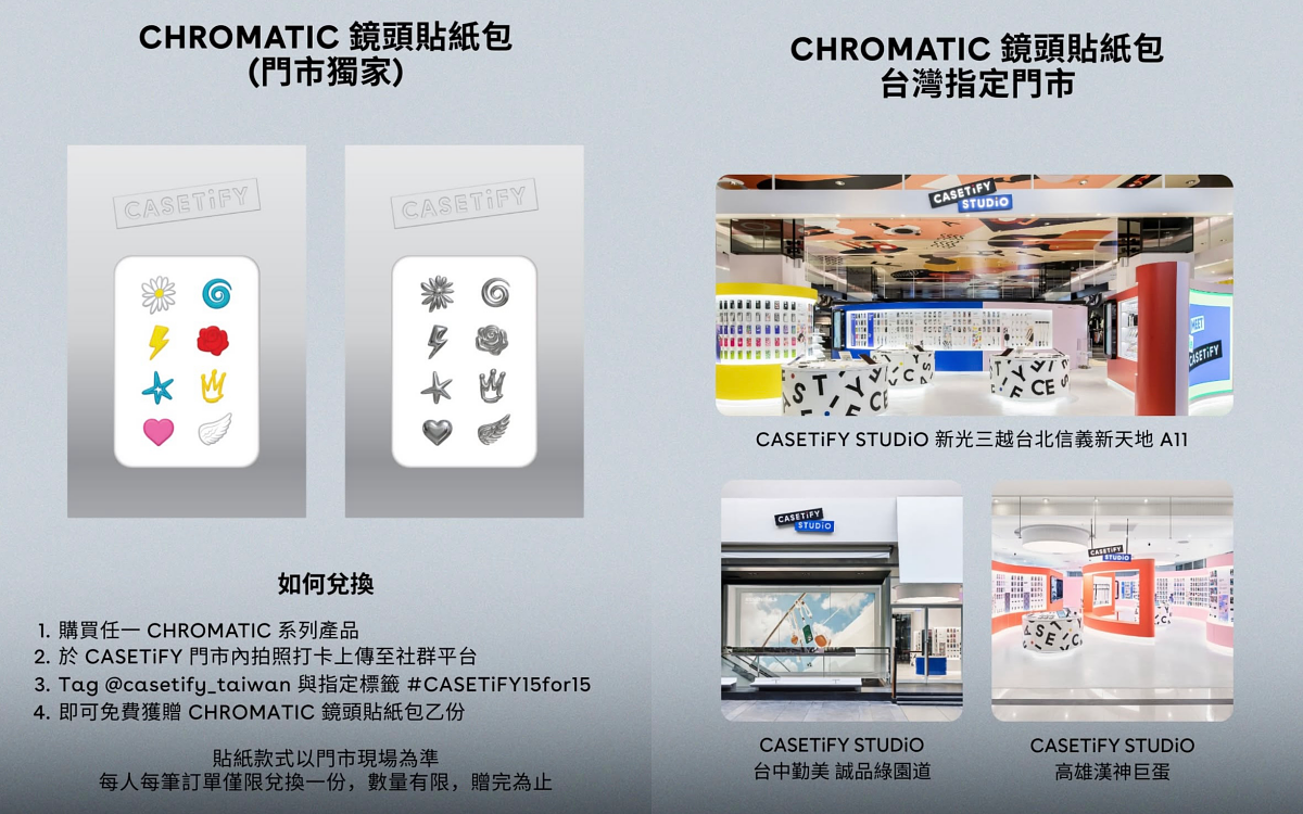 CHROMATIC: FORMS & HUES 系列將於 1 月 26 日在 CASETiFY 台灣官方網站及 CASETiFY STUDiO 品牌概念店及蝦皮 CASETiFY 官方旗艦店正式發售。
