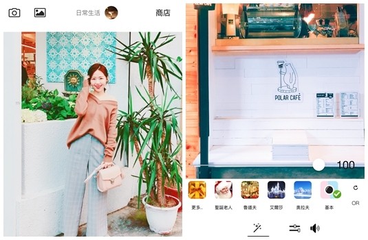 照片調整完後,需按右上方的商店去進行畫面裁剪、轉正等等功能,再按下完成即會儲存在手機裡,並能同時發佈到各式社交平台或軟體上喔!超級方便~