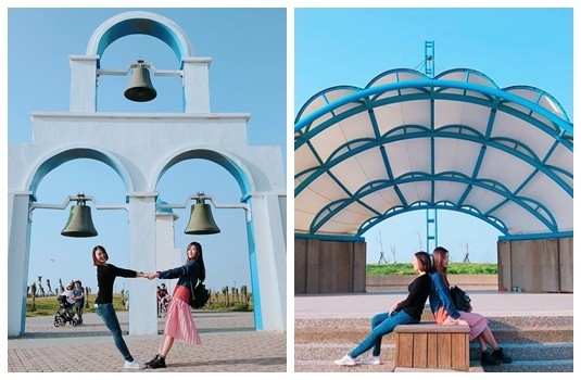 就連一旁的裝置藝術也是藍白相間設計,有一種置身在小希臘的夢幻錯覺呢~女孩們快選個風和日麗的好天氣來這裡拍美照吧!