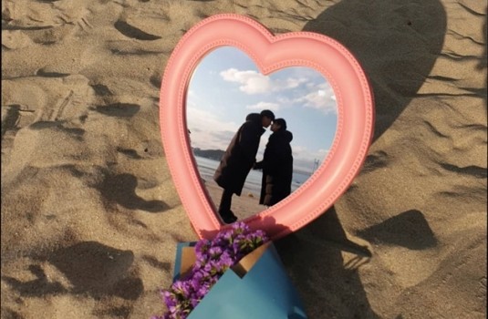 相信很多人都喜歡對著鏡子自拍對吧!現在再進化,對著愛心鏡自拍還能拍出甜蜜氛圍唷~可以將鏡子放在一個地方,將手機對著鏡子、人則是站到能被手機拍到的角度,可愛的鏡中情侶就完成了!