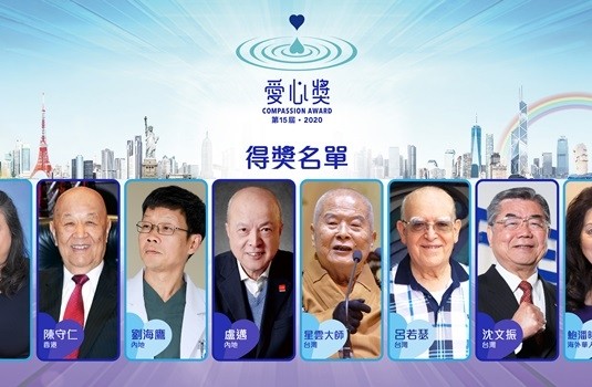 本屆「愛心獎」因新冠肺炎疫情,未克實地探訪各終選入圍者;終選改為「通訊投票」,經由兩岸三地28位評委的三輪「通訊投票」,8位得獎人終於揭曉,其中包括台灣的星雲大師、呂若瑟、沈文振;大陸的盧邁、劉海鷹;香港的陳守仁、黃凱欣;海外的鮑潘曉黛,他/她們在慈善界展現卓越的領導能力、堅持不懈的愛心事蹟,是人間典範,每位同時獲頒15萬美元獎金。