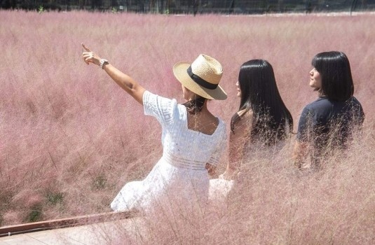 其實粉色芒草的正式名稱是「粉黛亂子草」,網友們稱它為「粉紅愛情草」,夢幻的粉紅色就像愛情一點甜蜜,花期為9月到11月中,可生長至30至90公分高,花穗是淡淡的粉紫色,遠遠望過去就一整片極夢幻的粉紅地毯。