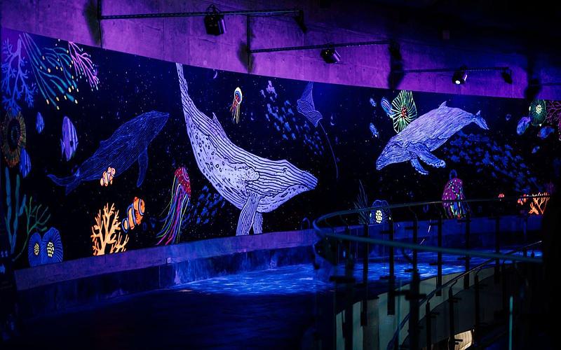 國內維持二級警戒,屏東海生館已恢復受遊客喜愛的餵食解說活動並開放餐飲服務,同時推出季節限定活動「璀璨之海」,讓民眾透過光影裝置感受海洋世界的奇幻魔力。活動館內規劃「與鯨共舞」大型AI互動投影牆、20公尺長的巨幅螢光插畫廊道「螢河燦燦」、首次的珊瑚礁幼魚展示「璀璨新生」。屏東海生館表示,海生館陪伴許多遊客創造不同人生階段的難忘回憶,就像寬廣的海洋蘊含著許多美好發生;暑期活動「璀璨之海」希望用多元方式描繪出海平面下的璀璨世界,讓來訪遊客感受每一個海洋心動時刻,更展現海平面下的豐沛生命力。除此之外,海生館營運團隊「海景公司」於今年夏天與台灣康匠旗下品牌「匠心」合作推出的Q萌海洋生物口罩也在此時推出,讓民眾入館戴上口罩也帶上好心情!