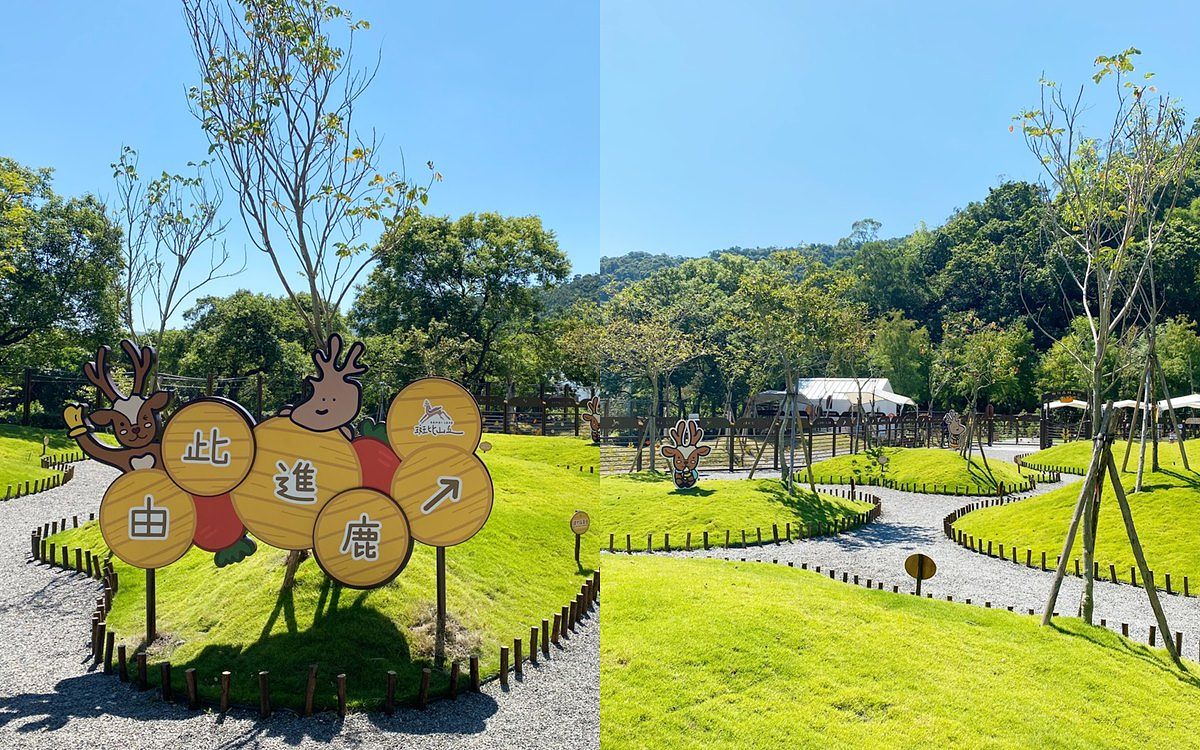 在遊園新路線途中,園方開闢了全新蜿蜒草丘小徑,綠油油的植被搭配藍天白雲景緻,宛如一座童話小森林,成為園區裡新興的美拍景點;此外,未來將陸續在草丘間設立互動立牌,上方說明動物體驗區的注意事項、與動物們互動的訣竅以及趣味科普知識問答,期望藉由民眾互動查閱立牌,加深了解梅花鹿的習性與知識。