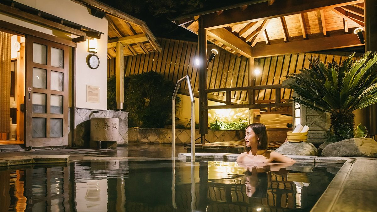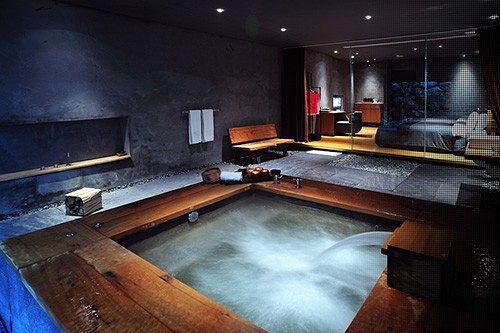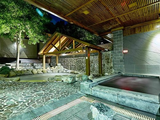 濃濃日式建築風格,整體環境氛圍帶著點宮崎駿「神隱少女」的神秘感。館內泉質為弱鹼性碳酸泉,泡湯時也能達到養顏美容。大眾池裡多達十四種的Spa設備,提供旅客使用,館內除了露天風呂,每間房也都有私人泡湯池,絕對是情侶的最愛!