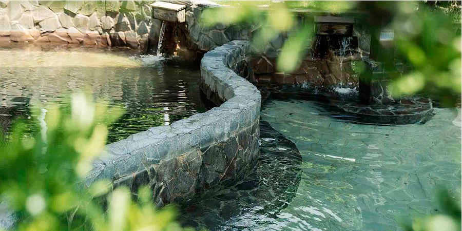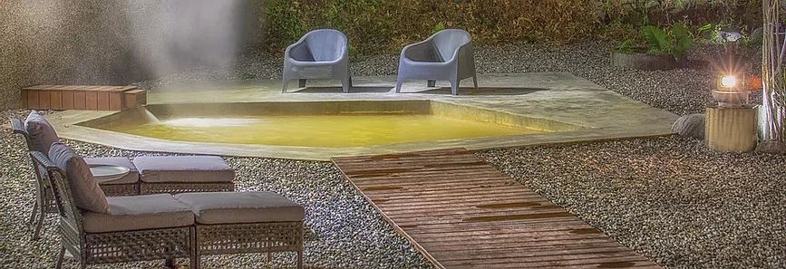 苗栗獨特的峇里島南洋風情主題溫泉旅宿,使用42°C碳酸泉,溫熱泡湯之餘也能徜徉在南洋度假氛圍當中。設有六種不同功能的露天風呂池:兒童池、按摩浴池、蒸烤箱、冷熱碳酸水池等。