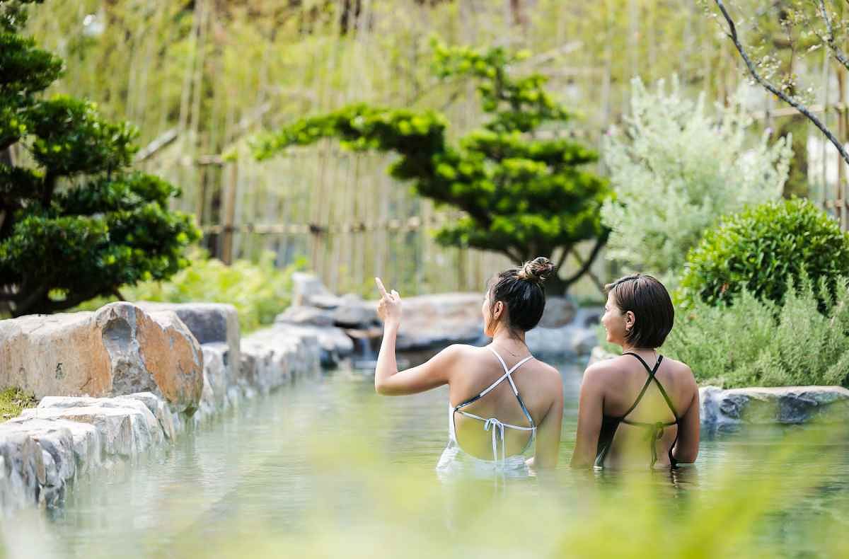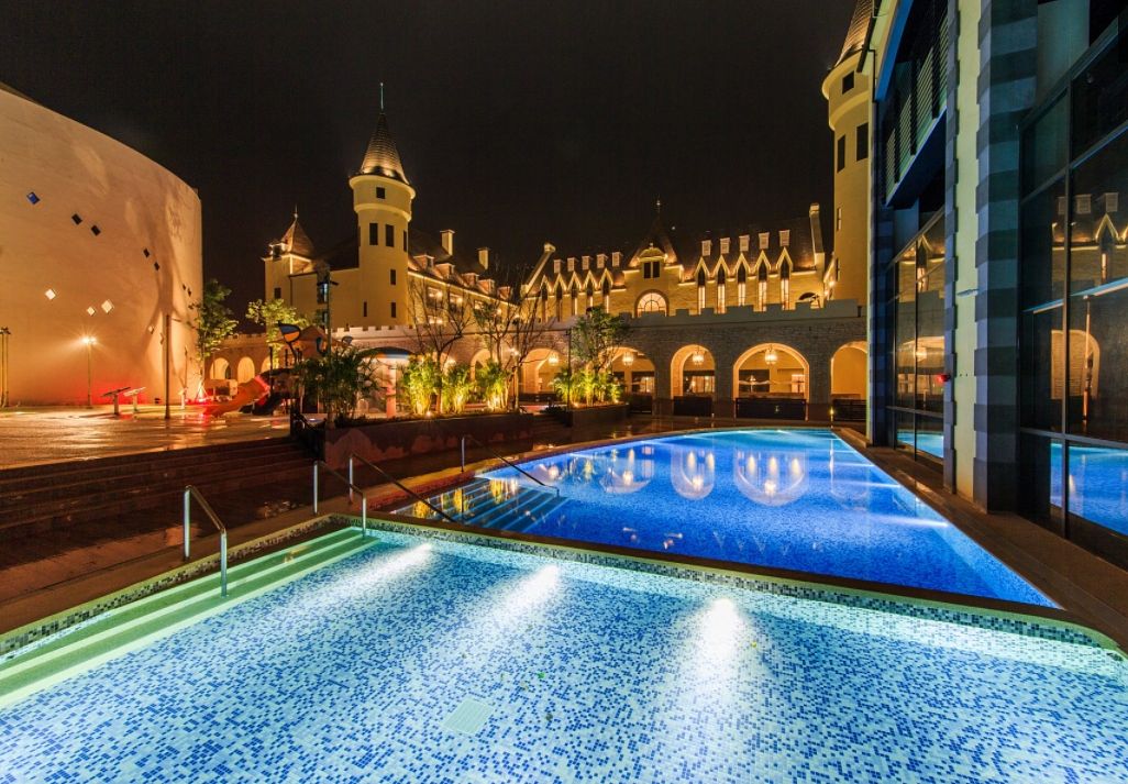 設有占地3000坪的養生溫泉區,規劃了:溫泉水療區、露天溫泉區、長方形溫泉池、兒童溫泉池、烤箱、更衣室、便利店,無論男女老少都可以在此享受泡湯帶來的放鬆愉悅。