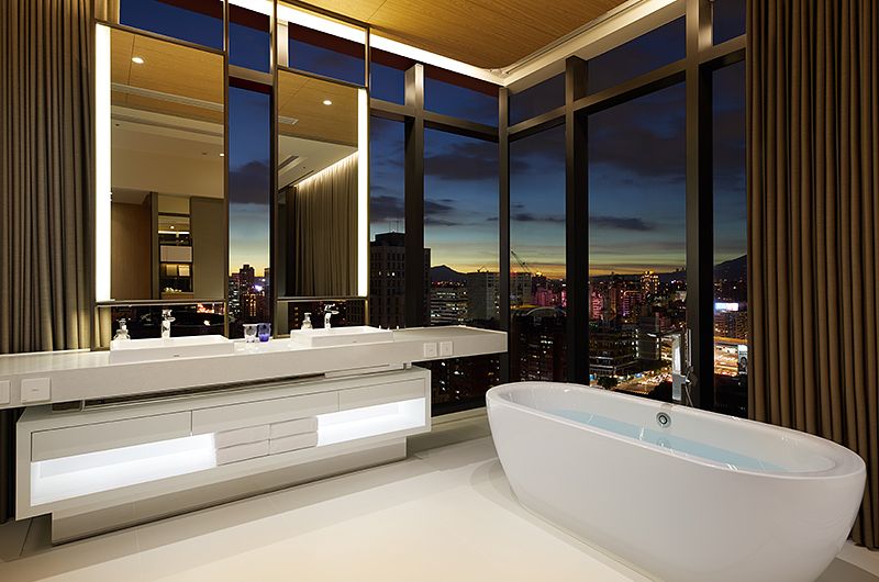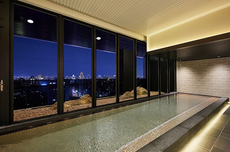 最特別的是,這間飯店於頂樓規畫了都會飯店難得有的大浴場,能一邊泡湯一邊觀賞空中花園造景、眺望台北的美麗夜景。