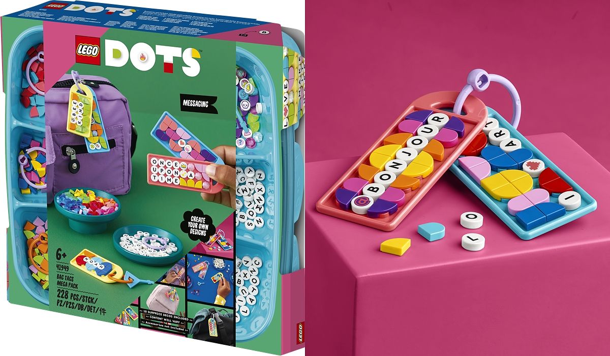 LEGO® DOTS 吊牌超值組-客製訊息暢所欲言!擺好兩種不同尺寸的平面吊牌、加上字母豆豆寫下酷炫訊息,並用彩色、蛋白色與印花豆豆量身打造它們。搭配 6 號豆豆補充包或用其他 DOTS 豆豆樂系列盒組(另售)的豆豆享受更多樂趣。將吊牌固定到任何地方,並與全世界分享你的訊息!