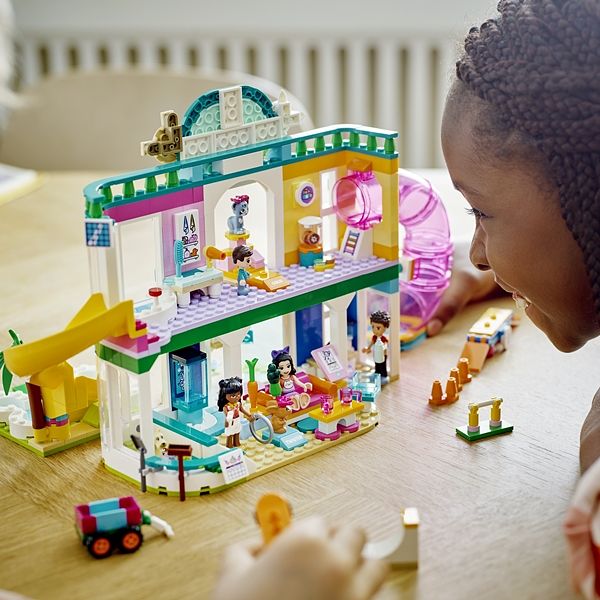 喜歡動物的孩子,他們會開心教他們的狗狗表演新把戲、帶牠穿越敏捷訓練場,並教牠溜滑板。寵物可以溜下其中一座色彩繽紛的溜滑梯,進入游泳池,當作獎勵。 數位拼砌樂趣 心湖城玩具包含現實世界的細節,幫助小小拼砌者探索他們的興趣。