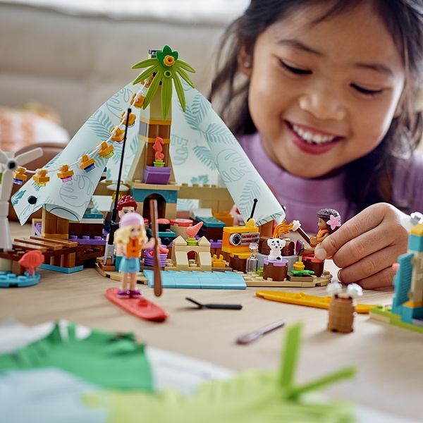 有豐富特色與玩具,讓孩子上演海邊的夏日場景。別墅有 2 間臥室,一間有浴室和馬桶,此外還有陽台與屋頂游泳池、廚房與客廳。屋外有桌球桌、碼頭和充氣香蕉船,可乘風破浪展開精采刺激的活動。靈活多變的樂趣 每個零件均為模組化設計,因此創意豐富的孩子可任意配置建築物!