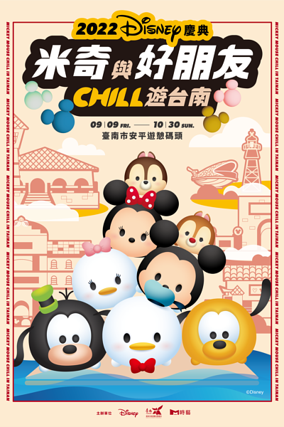 米奇與好朋友們要到台南與大家見面了!今年9月9日起自10月30日止,為期近兩個月,米奇與好朋友將在台南安平遊憩碼頭與遊客們見面,遊客們可以觀賞包括大型Tsum Tsum、迪士尼快閃店以及特別規劃的主題拍照區。台南市長黃偉哲表示,歡迎旅客到安平,與陪伴我們一起成長的最可愛角色們CHILL遊台南!