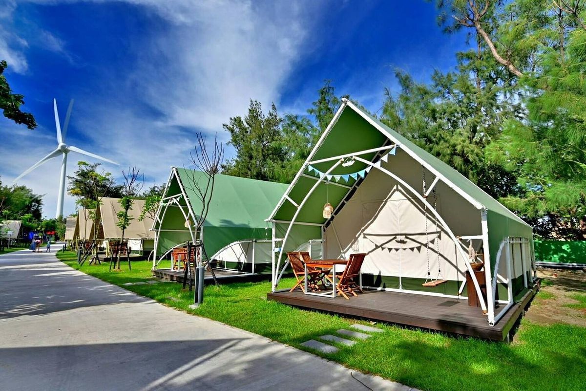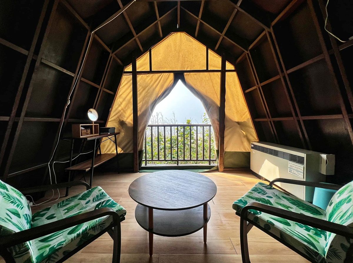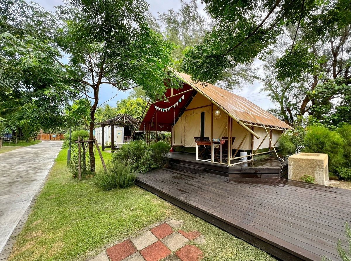 不會有強風吹襲的防風林內建置了32帳豪華露營帳篷,分別設有「二人、三人、四人」床型,精選國外進口頂級帳篷帆布,量身縫製防火、降噪、抗紫外線的帳篷,寬敞舒適。備有沙發、電風扇、冷氣機、精緻床墊、寢具與獨立衛浴等高級設備,每房皆備有熱水壺及茶包咖啡,可在專屬的戶外座位區享用。