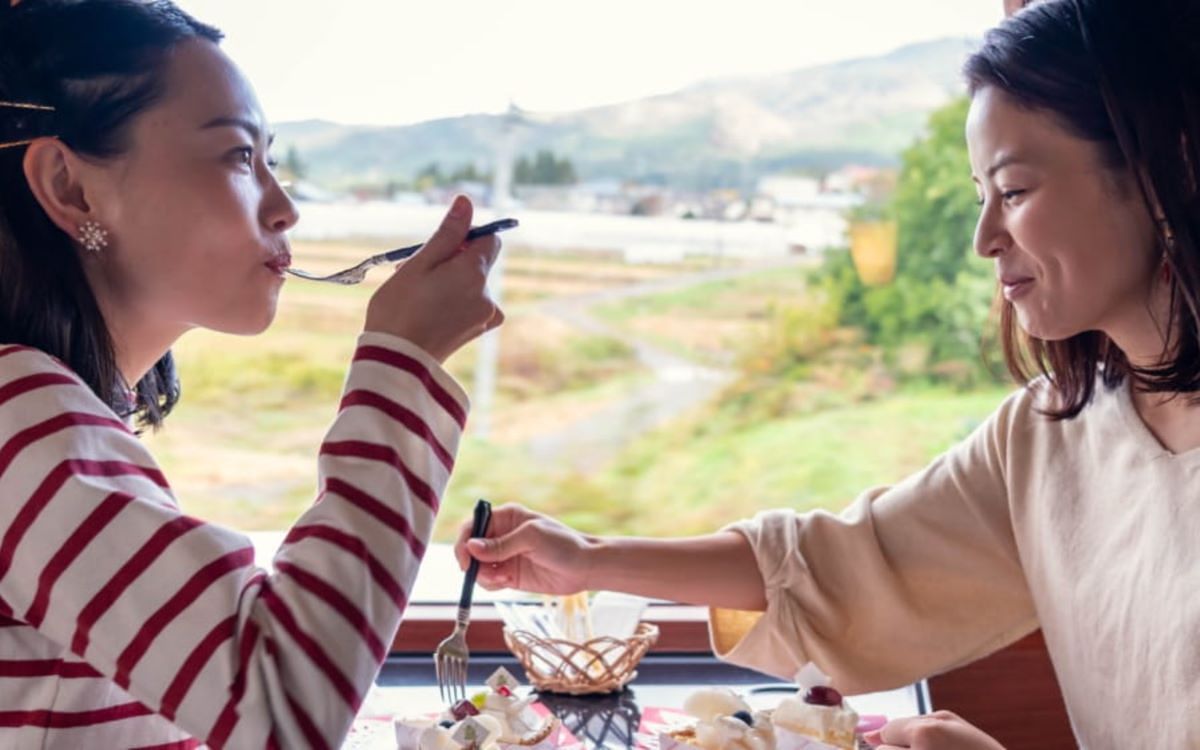 一邊欣賞日本東北地區的美景,一邊享用精緻的水果甜點,奢華的饗宴讓「FruiTea 福島號」觀光列車的人氣居高不下。福島縣在日本有「水果王國」之稱,盛產蘋果、梨子、水蜜桃等水果。「FruiTea 福島號」以福島豐富的「水果」為主題,提供乘客在地特製的水果甜點與飲料,搭配窗外的山水美景,打造出優雅舒適的「奔馳的咖啡廳」。適合三五好友一同聊天啖美食,享受悠閒的列車時光。