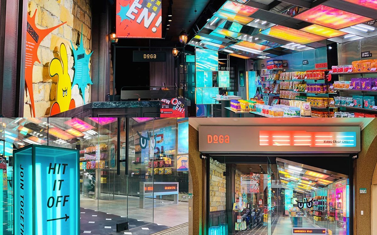 往後不只有台南安平旗艦店,在熱鬧的中西區還有全新的「台南正興店」,以及位於大稻埕老宅中的「台北迪化店」。前者以貨櫃屋作為台南創始概念店的延續,宛如新潮的便利商店般,架上擺滿了 DoGa 令人魂牽夢縈的辣椒零食;台北迪化店則呼應了品牌新生,再加上老宅的歷史,將店舖分為兩種風格,一半是復古的銀行,另邊是新潮店面,宛如兩個世界般交織了 DoGa 的新舊生命。